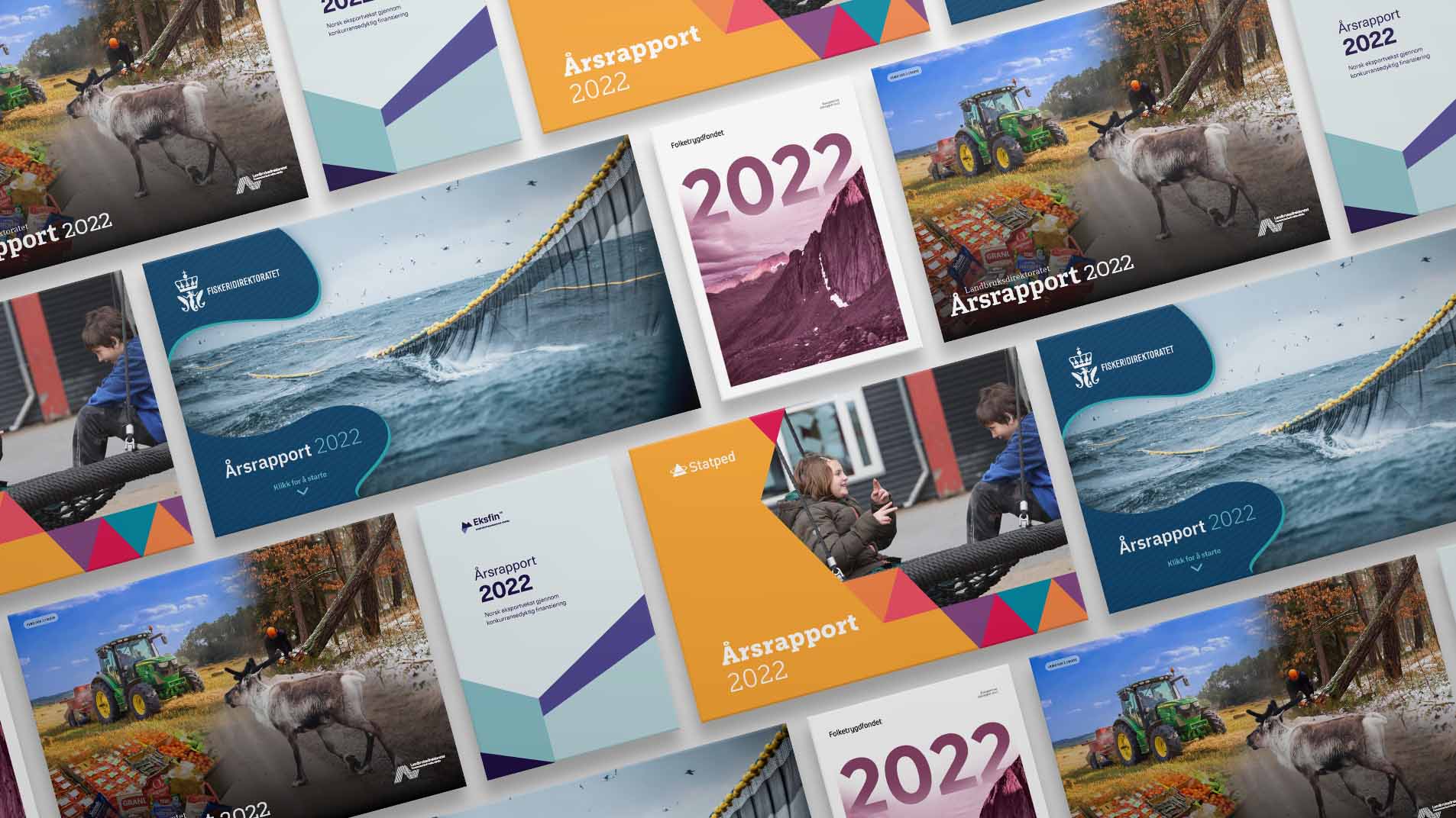 Design av årsrapporter for 2021, for flere forskjellige offentlige kunder